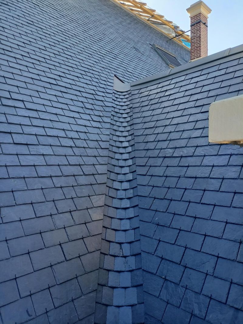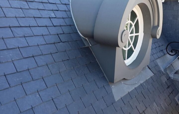 Ces éléments, esthétiques et fonctionnels, s’harmonisent parfaitement avec le travail d’ardoisier réalisé par nos couvreurs sur ce bâtiment monumental, dont le style évoque l’architecture traditionnelle flamande et wallonne.