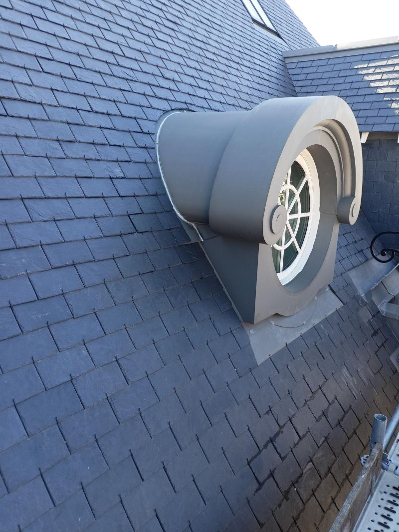 Cette phase a été marquée par la création, par nos équipes de l’atelier d’ornementation, de huit œils-de-bœuf en zinc prépatiné.