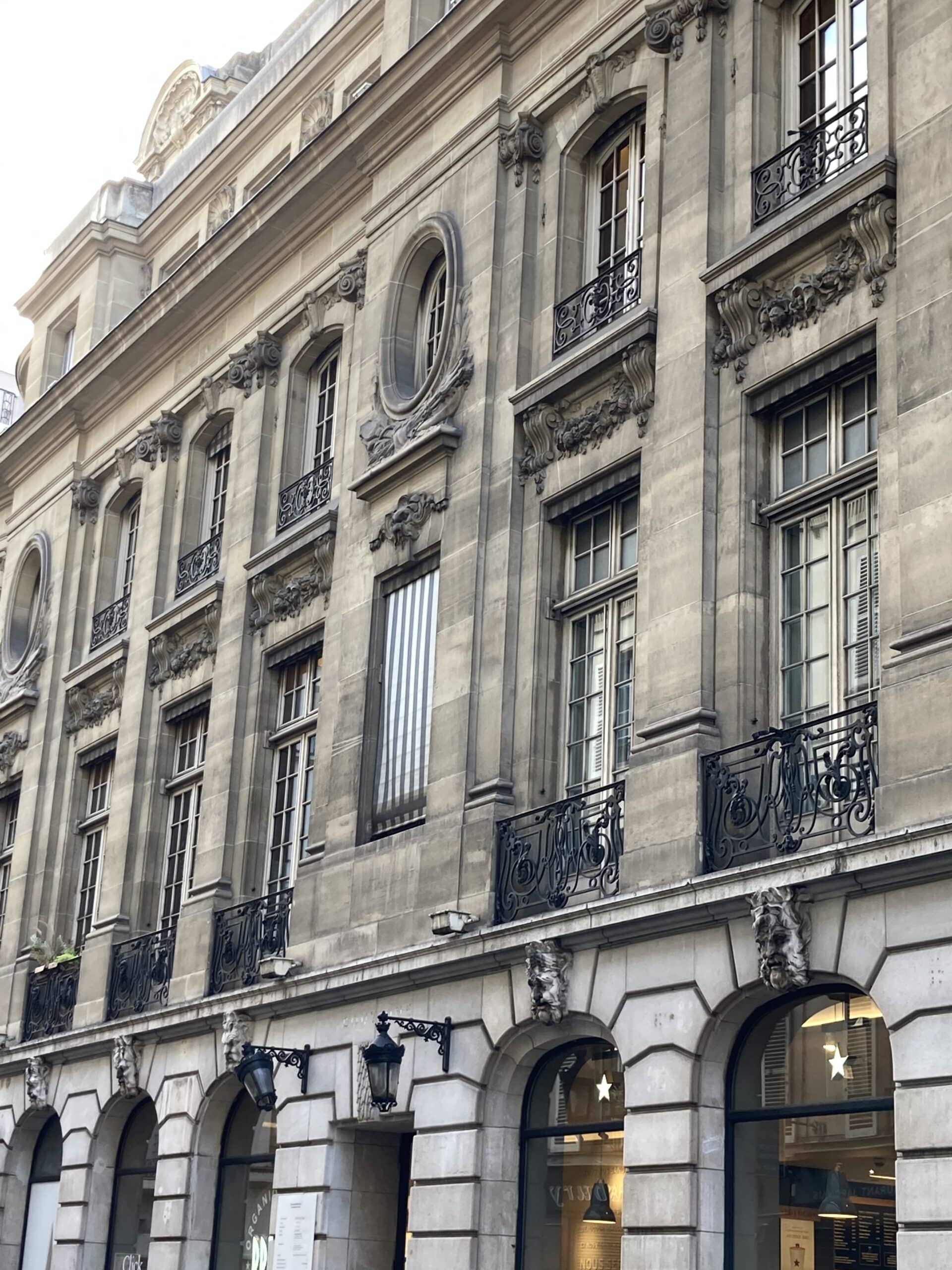 Notre projet de restauration des façades du 12 boulevard de la Madeleine a impliqué un nettoyage complet de l’ensemble des surfaces, y compris les parements en pierre de taille, les mains courantes, les balustres, ainsi que les bandes saillantes et les corniches moulurées, utilisant la technique de l’hydro-gommage.