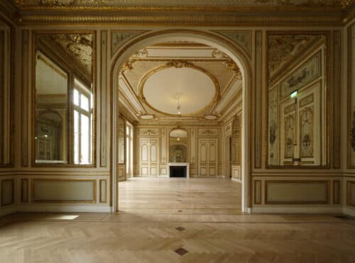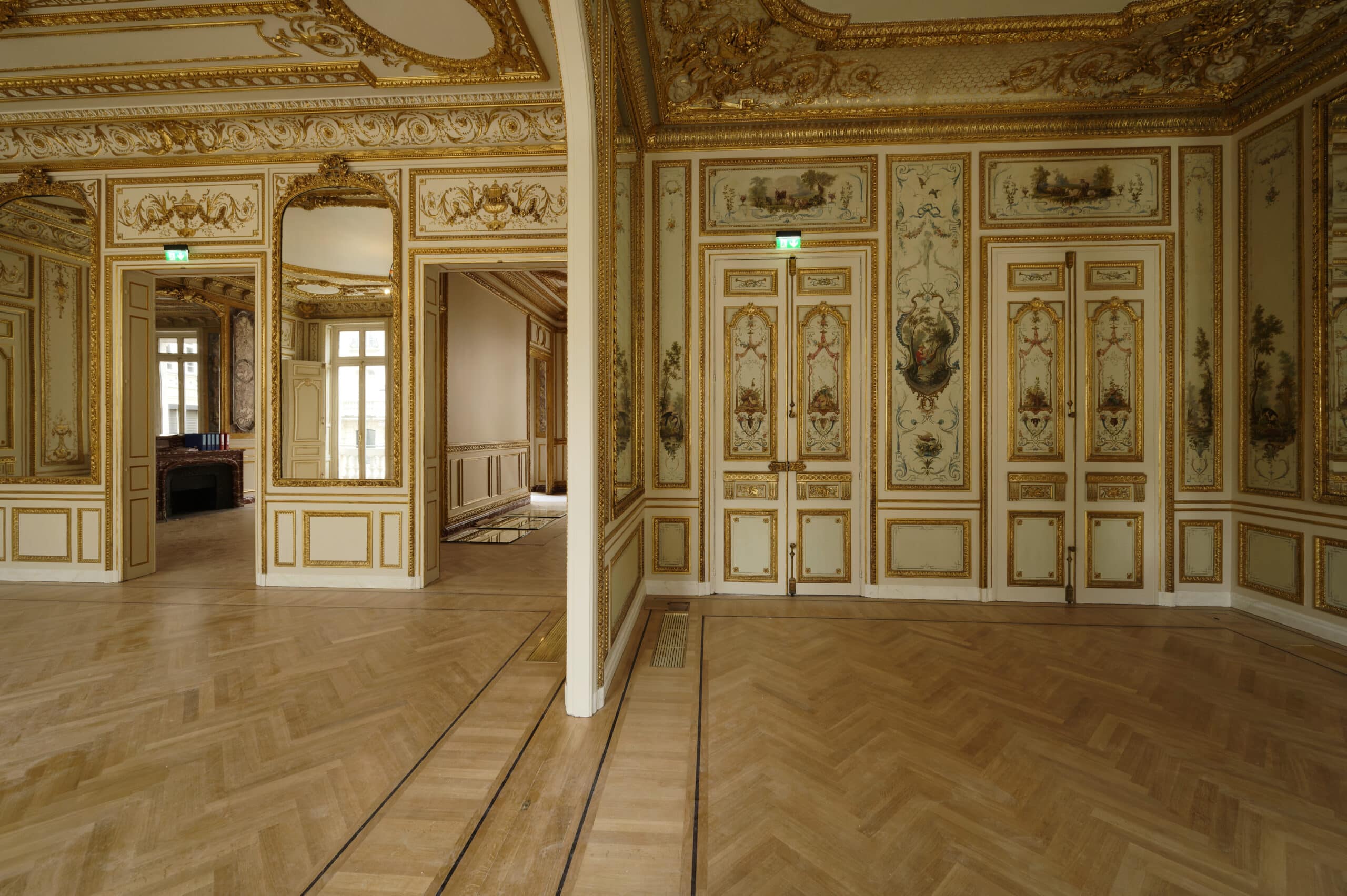 salons dorés à la feuille, bureaux modernes et galeries élégantes.