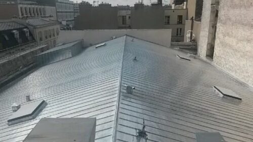 Pour satisfaire aux exigences architecturales, techniques et en particulier acoustiques du projet, l’entreprise a proposé un complexe structurel de toiture froide en zinc à joint debout intégrant une isolation par laine de roche et 4 châssis de désenfumage à hautes performances acoustiques. L’enclavement de la toiture et les dimensions importantes des rampants de toiture ont conduit les équipes à pré-fabriqué les bacs dans un atelier installé sur le toit. Ce choix logistique des équipes travaux a fortement contribué au succès du chantier.
