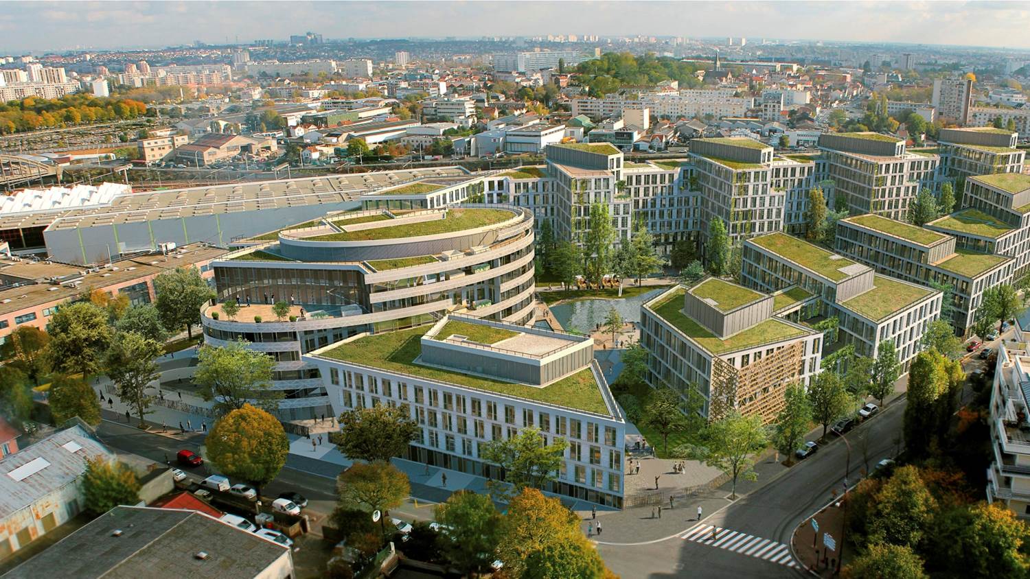 Sur un terrain de 3 hectares, dont un parc de pleine terre de 1 hectare, Orange a inauguré son Éco campus de 72 000 m² de bureaux en Janvier 2016. Ce site, tout proche de Paris, est organisé en campus et les bâtiments sont distribués par le parc, pour privilégier l’espace. Il peut accueillir 5 000 occupants. Orange a choisi ce site pour héberger les services de la chaîne de l’innovation et en faire un lieu emblématique.