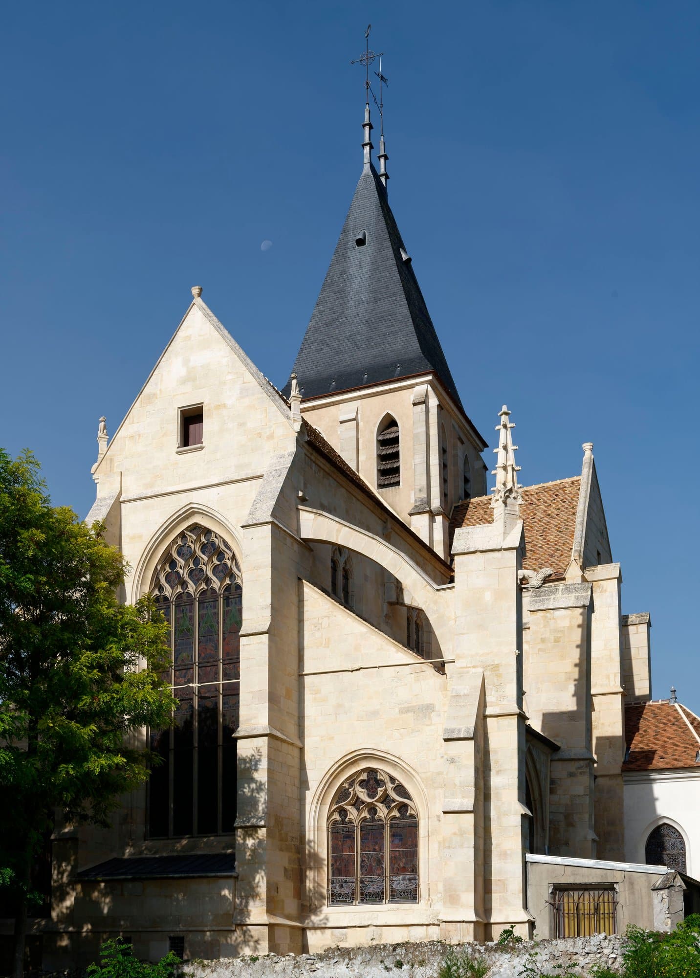 Sur près de 3 ans de chantier, impacté par la crise du Covid-19, les travaux entrepris, découpés en quatre lots : la couverture, la charpente, les vitraux et la maçonnerie pierre de taille, ont principalement consisté, pour notre part, à la consolidation des parties hautes et arcs-boutants, ainsi qu’au remplacement de plus de 100 m3 de pierre issue des carrières du Bassin parisien et de Saint Maximin en particulier.