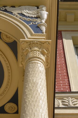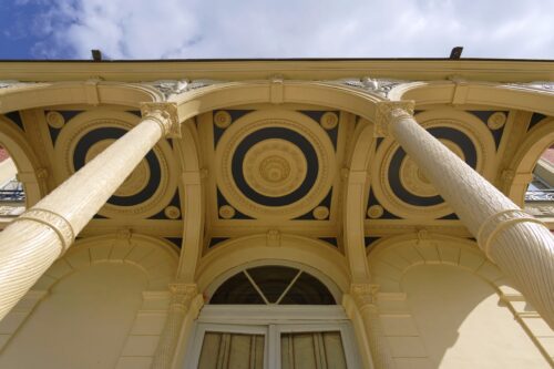 Nous mettons un point d’honneur à protéger les peintures remarquables, actuellement en état de détérioration. Le péristyle quant à lui, fera l’objet d’une restauration minutieuse dans notre atelier.