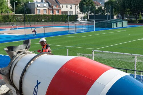 - La mise en œuvre d’une résine teintée sur la tribune existante.